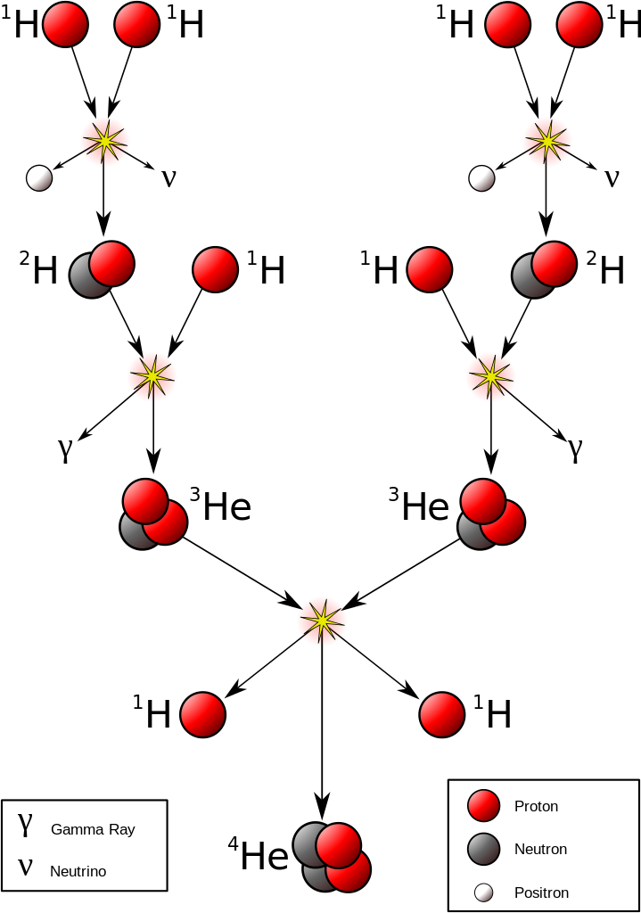 Step 4: When the stars reached their maximum size, and their temperature reached over 10 million degree Celsius, a series of thermonuclear fusion reactions started in the core of sun with the end product of (helium-4) formed from the fusion of four hydrogen nuclei (protons).
